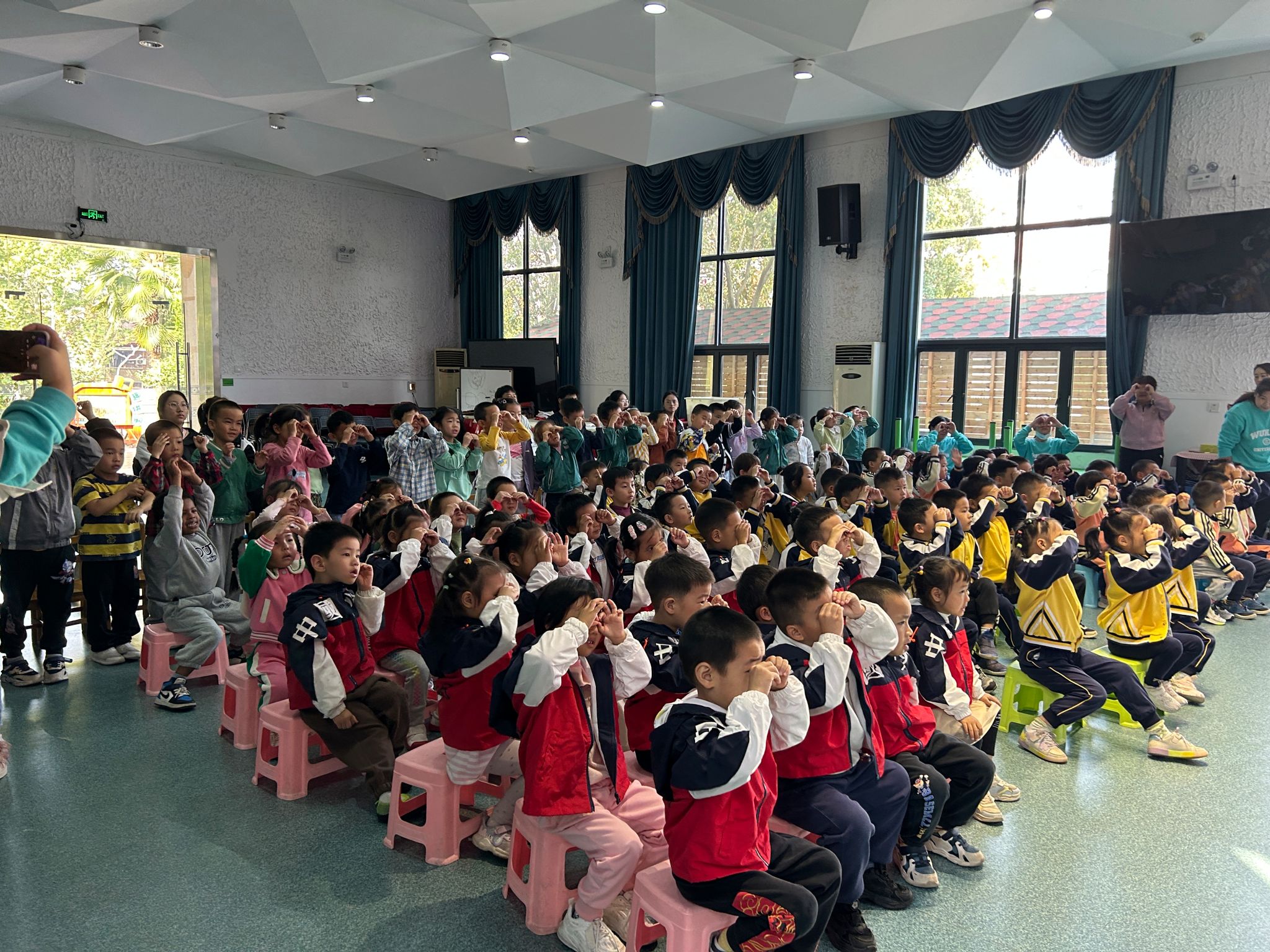 王医生还和幼儿们互动,玩起了“你问我答”,孩子们争先恐后地举手发言,参与提问,现场气氛十分活跃。最后王医生教大家做护眼保健操,进一步让幼儿对爱眼知识有了更深刻的认识,对护眼的各种方法也有了更充分的掌握。