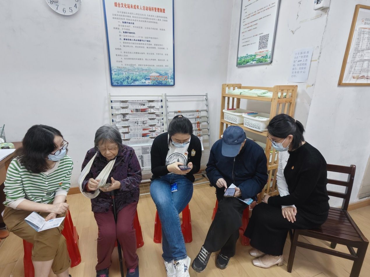 机关综合党支部共出动11名党员,在活动现场发放提前印制的200份《ok138太阳集团中国官方网站线上健康服务宣传手册》,手把手地帮助离退休老同志在微信公众号上绑定就诊卡,并讲解如何用手机预约挂号、体检,以及在线查询体检信息。