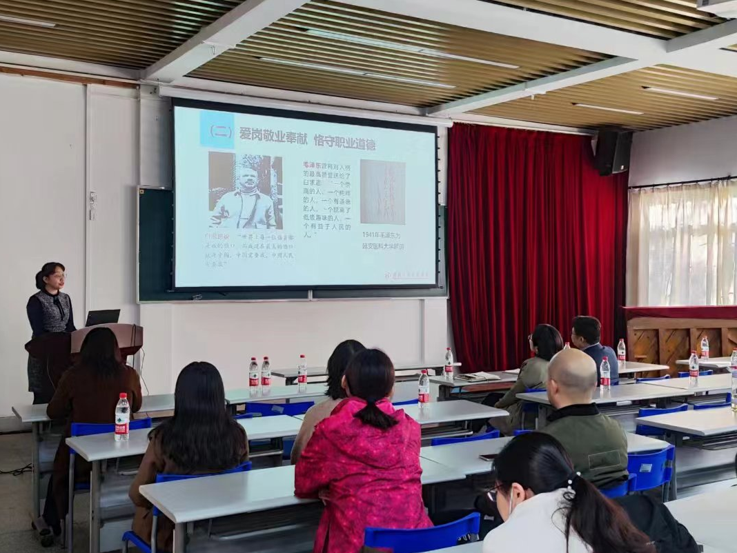 校ok138太阳集团中国官方网站一直高度重视医德医风建设,并不断努力提升医疗服务的质量。此次培训的首要内容,是由周玉霞书记亲自邀请中南ok138太阳集团中国官方网站党办杨丽丽副编审为全体医护人员讲解医德医风和医患沟通方面的知识。杨编审以其丰富的经验和独到的见解从医德的内涵、医德医风建设要求与实践、医患沟通重要性和技巧、“厚德精医、杏林春暖”的秘籍四个方面进行了精彩细致的讲解。整个分享过程中,杨编审都辅以大量真实的案例,使每个参与者都能从中受益。